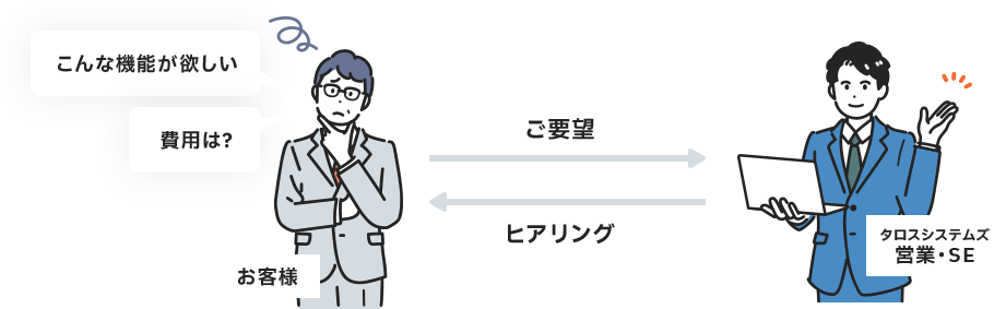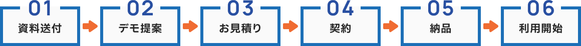お問い合わせ後、当社セールス担当がお客様の業態や運用課題をヒアリングし、最適なプランとお見積りをご提案します。ご承諾後は導入スケジュールを確定し、機器手配・初期設定・運用開始まで専任スタッフがサポートいたします。