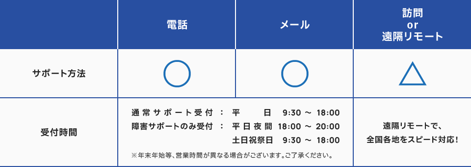 ※電話番号・メールアドレスはご契約者様のみにお伝えしております。営業窓口ではサポートのお問い合わせをお受けできませんので予めご了承ください。